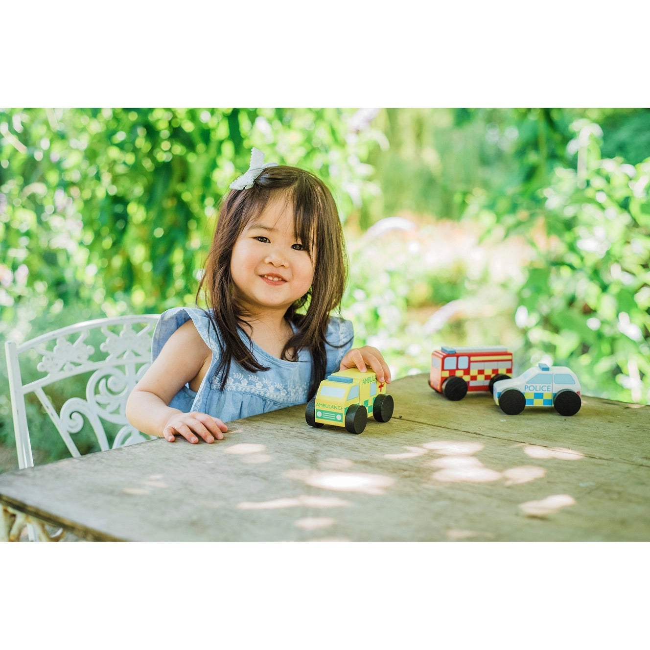 En liten träambulans, perfekt för fantasifull lek, och perfekt för att lära barnen allt om räddningstjänsten. Träfordonet är perfekt för små händer och hjälper till att utveckla rörelse och koordination.