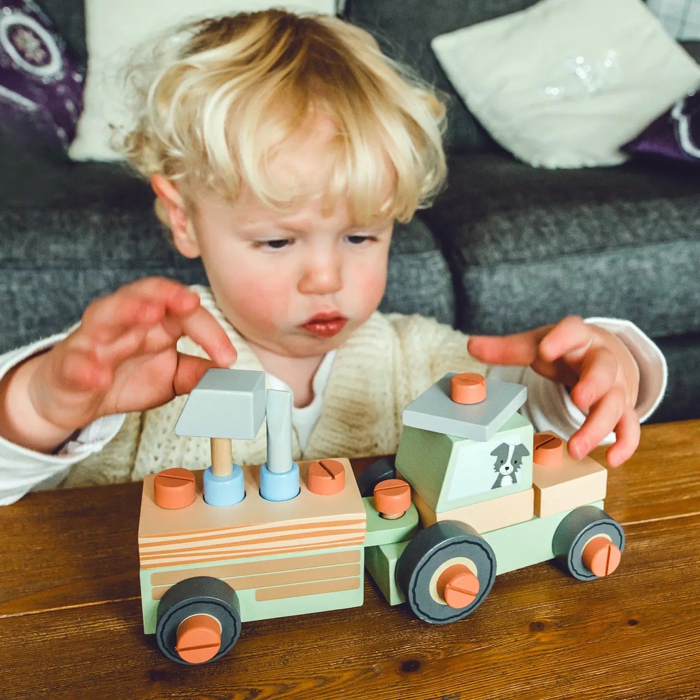 Denna träkonstruktionsleksak är perfekt för alla spirande mekaniker. Använd de två verktygen för att sätta delar och skruvar på plats för att bygga upp en traktor och släp. De byggbara delarna är bra för att utveckla finmotorik, inklusive hand-öga-koordination, och uppmuntra fantasifull lek och problemlösning. Den byggbara traktorn är tillverkad helt av FSC® -certifierat trä och levereras i helt återvinningsbara förpackningar.