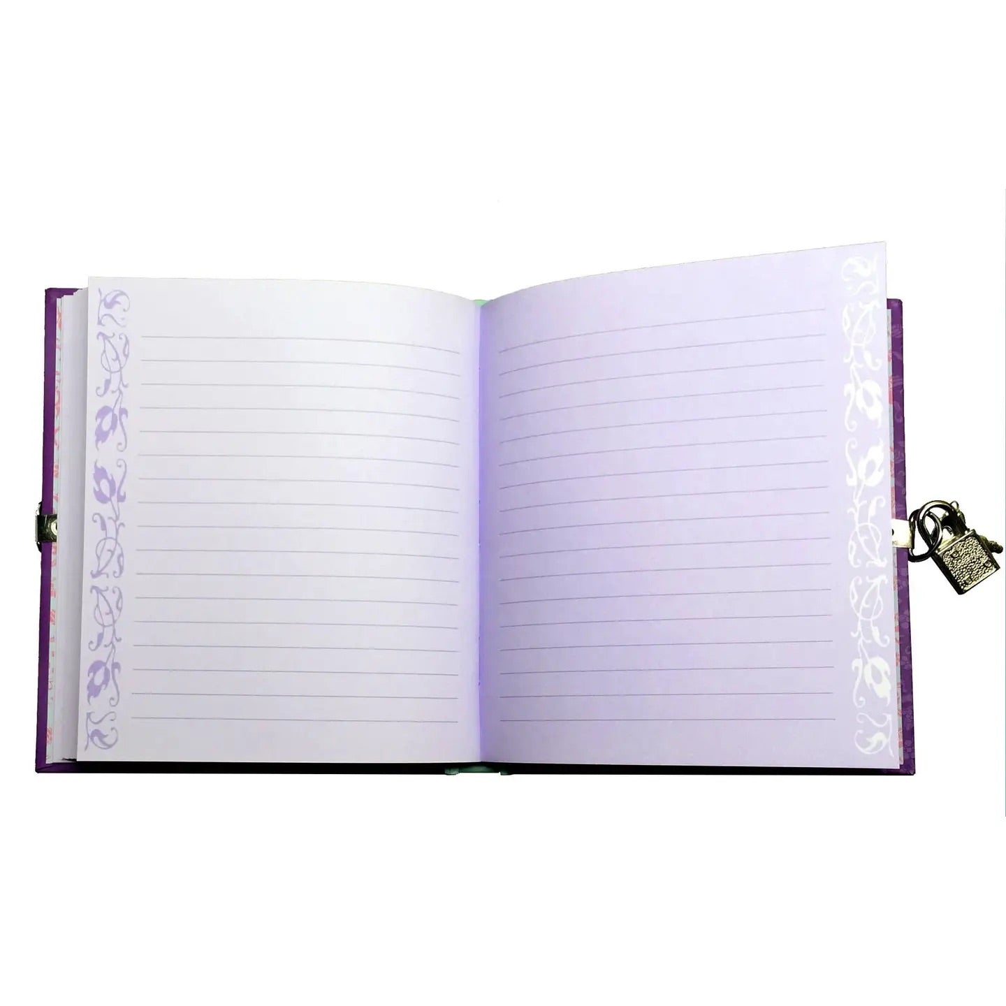 • Folierat omslag och ryggrad; 176 fodrade och färgsidor; Tryckt bokplatta; Inkluderar lås och 2 nycklar