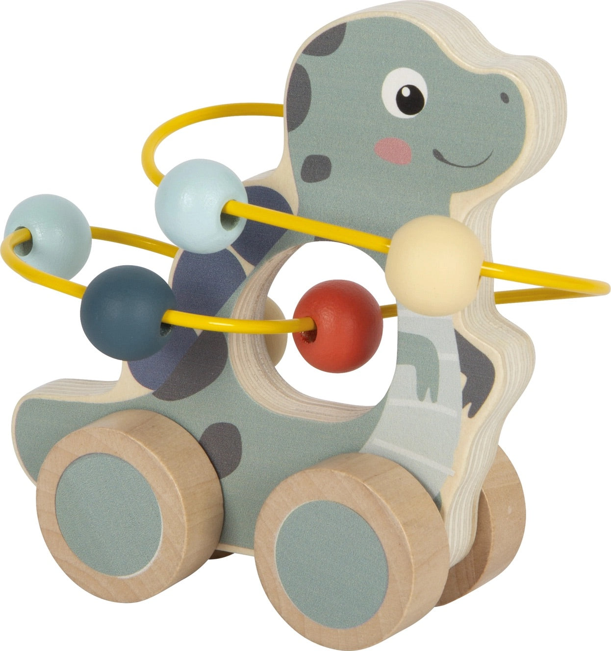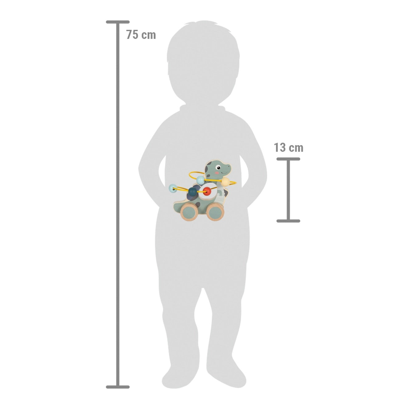 Dinosaurialarm i barnrummet! Tillverkad av FSC® 100% certifierat trä, uppmuntrar denna söta dinosaurie på hjul även de yngsta barnen att utforska världen. Tack vare den integrerade motoriska kulslingan är det den perfekta partnern för träning av motorik. En söt följeslagare som tack vare sina smidiga hjul inbjuder dig att åka på snabba resor och ger rörelse in i barnrummet! En riktig höjdpunkt för alla små dinosauriefans och en blickfångare för varje barns rum! Leksakerna i produktlinjen ”Dino” handlar om de förhistoriska varelser som alltid har fascinerat unga och gamla. Den glidande dinosaurien i trä främjar inte bara motorik och rörlighet utan stimulerar också barns kreativitet och fantasi.