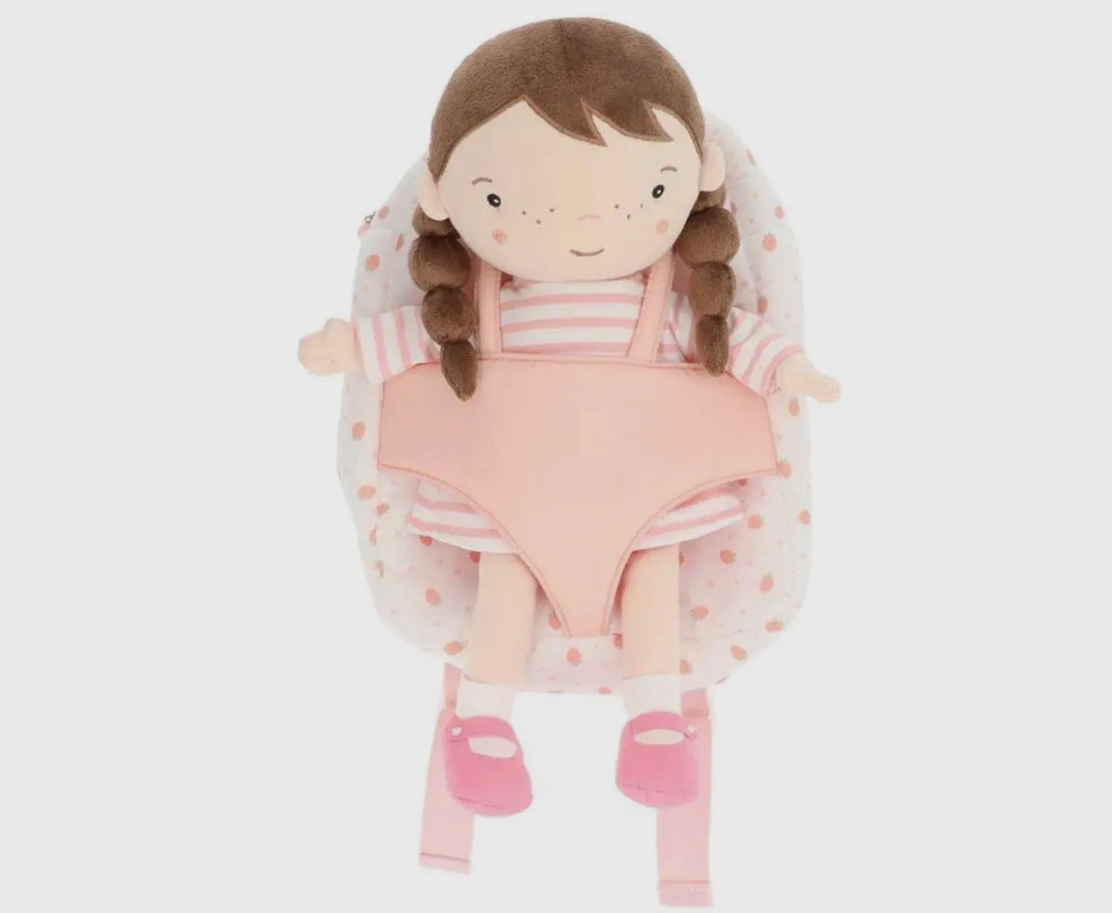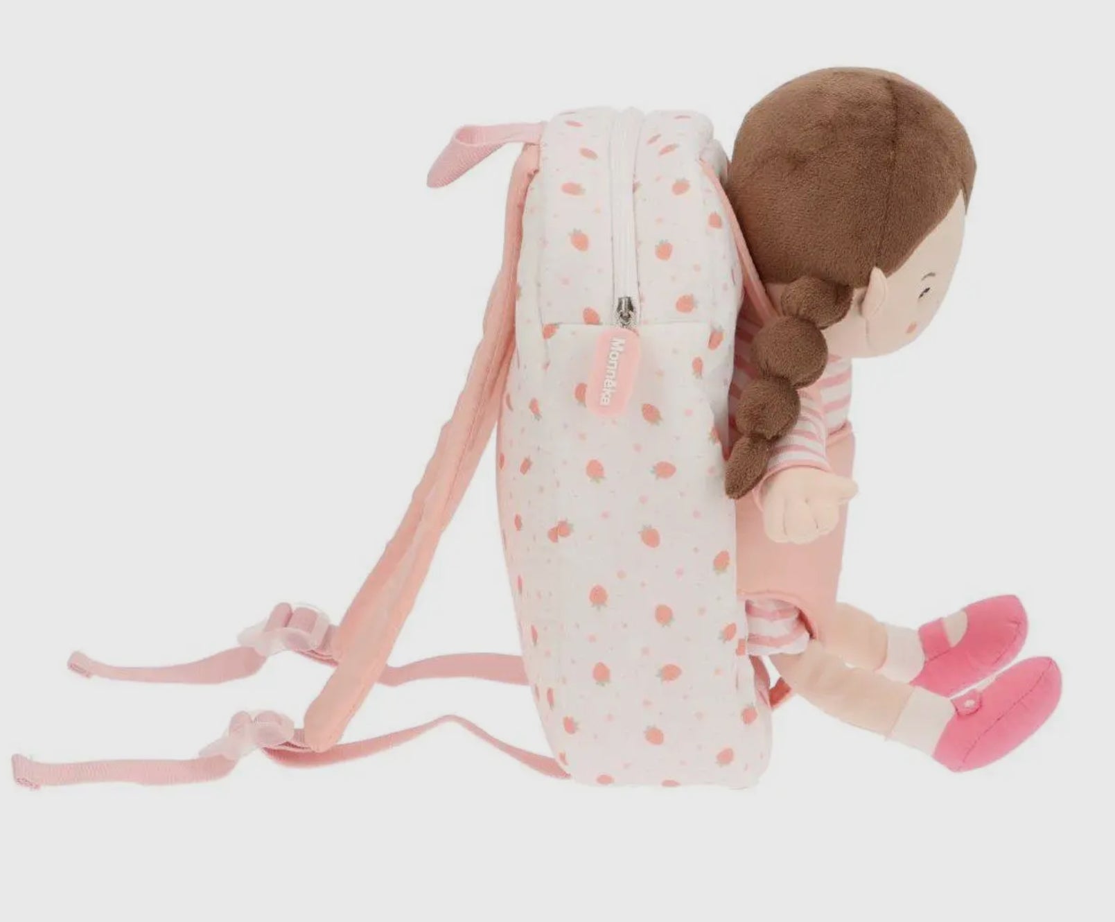 Ta med din docka vart du vill och de saker du behöver i denna dockryggsäck från Monnëka. Förutom att bära din favoritdocka kan du också ta med hennes tillbehör tack vare det rymliga facket med dragkedja. Du kan komplettera dockryggsäcken med den vackra dockan Lola.