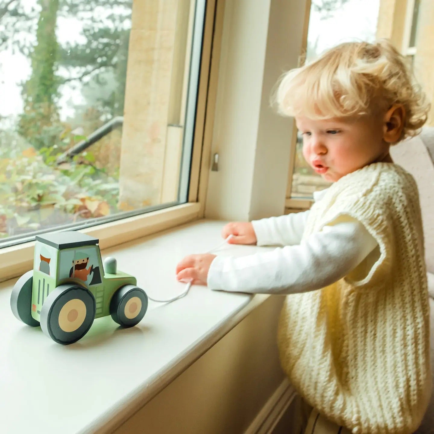 Denna härliga drag-traktor i trä är den perfekta traditionella träleksaken. Det här söta lilla fordonet är målat i ljusa färger och följer ditt barn runt när de drar i det med det mjuka bomullssnöret. Perfekt för att uppmuntra de första stegen. Denna produkt är tillverkad av FSC® -certifierat trä och kommer i vackert designade, helt återvinningsbara förpackningar.