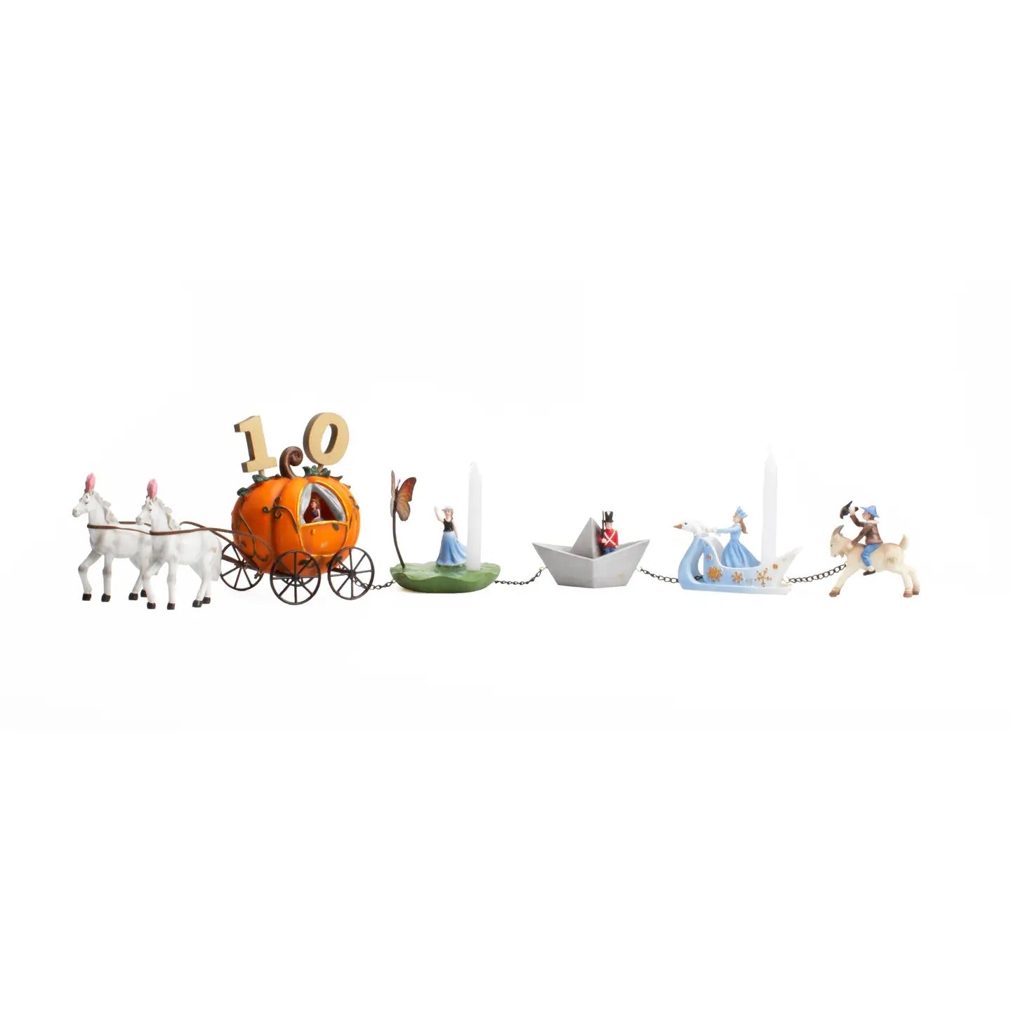 Exklusivt födelsedagståg med välkända sagor från H.C Andersen och bröderna Grimm. Födelsedagståget är tillverkat av harts och är handmålat. Askungens vagn har LED-ljus och hål för nummer 0-99. Integrerade hållare för 2 ljus. Inklusive åldersnummer. Samlarobjektserien kommer att utökas med 1-2 äventyr årligen.