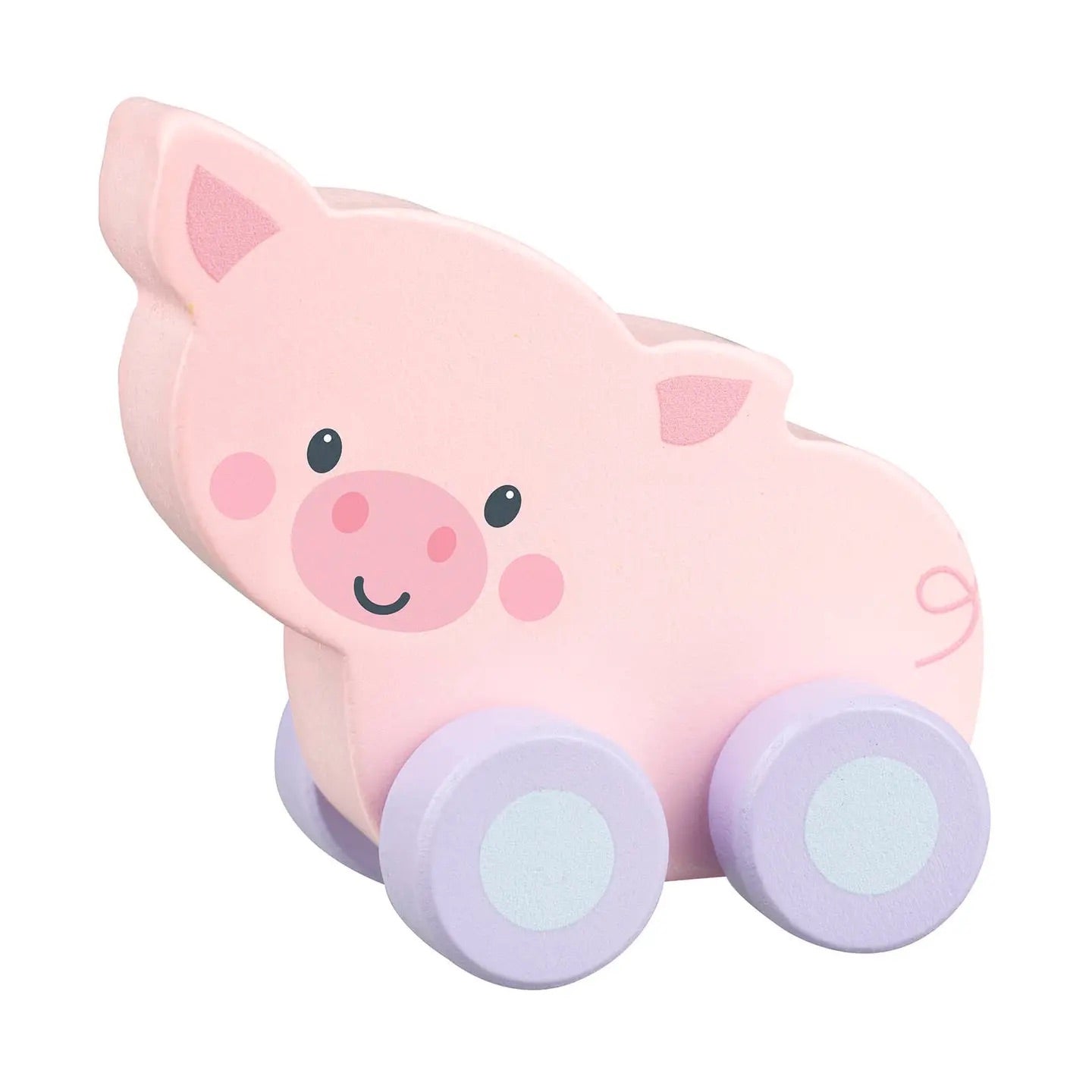 En trägris på hjul, perfekt för små händer att köra med. Denna lilla gris är utmärkt för att uppmuntra fantasifull och social lek, samt utveckla viktiga motoriska färdigheter. Tillverkad helt av FSC® -certifierat trä.