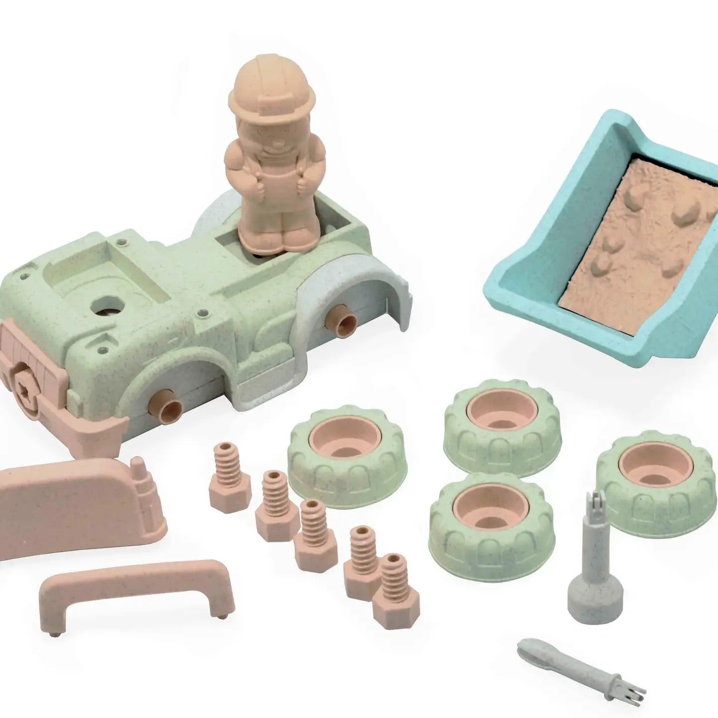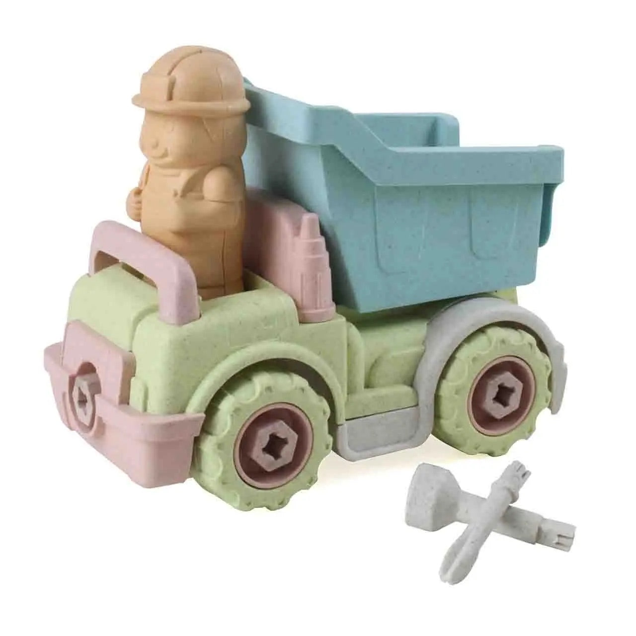 Leksaksbil, dumper tillverkad av vetehalm 120° C kokt desinfektion, organiska material tillverkade av vetehalm, grönt och hälsosamt. Nedbrytbara material.