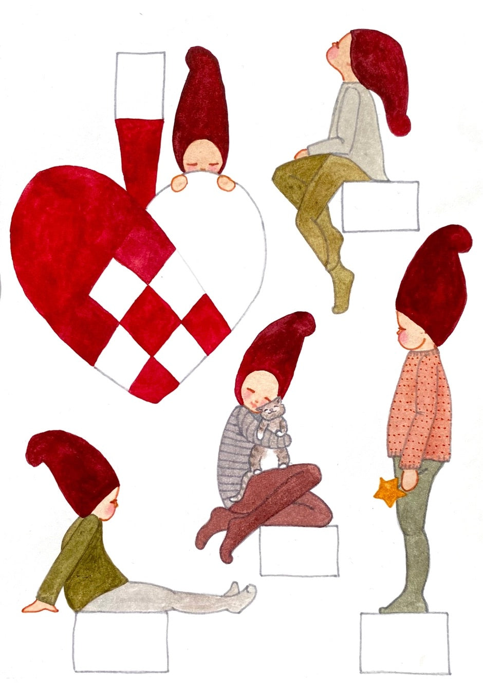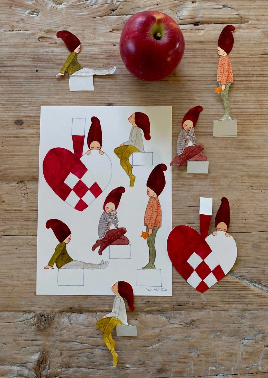 Klipp ut alverna och fäst dem i hyllor och fönsterbrädor med en liten bit tejp. Du kan också skicka dem som ett julkort för att inspirera till kreativt julkul.