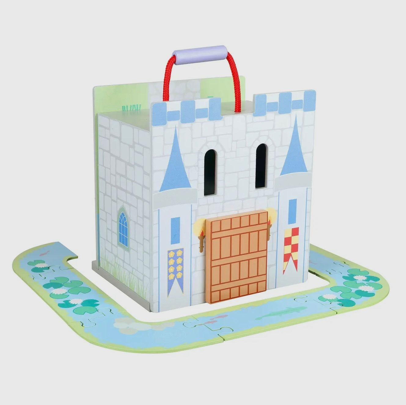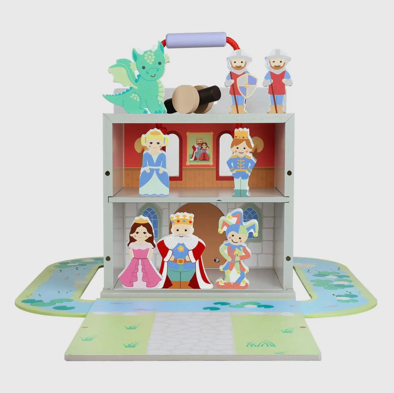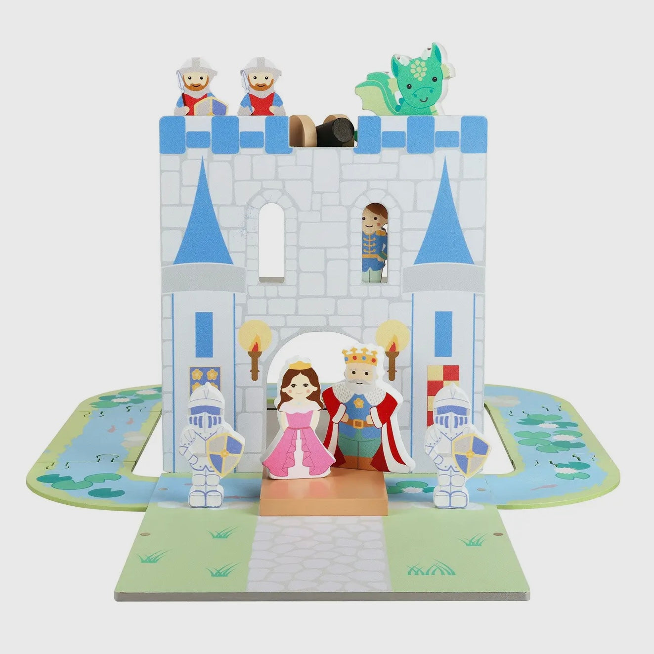 Vackert tillverkat av hållbart trä, kommer detta förtrollande set med alla karaktärer som behövs för att skapa oändliga berättelser om riddare, kungligheter och drakar. Bygg vallgraven för att skydda slottsmurarna och försvara kungariket mot attack.