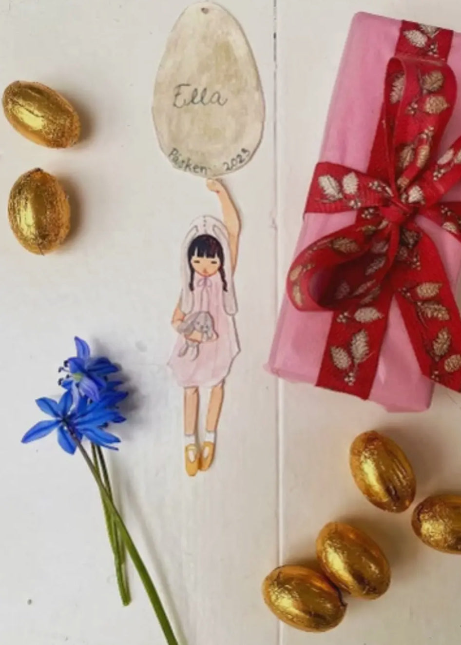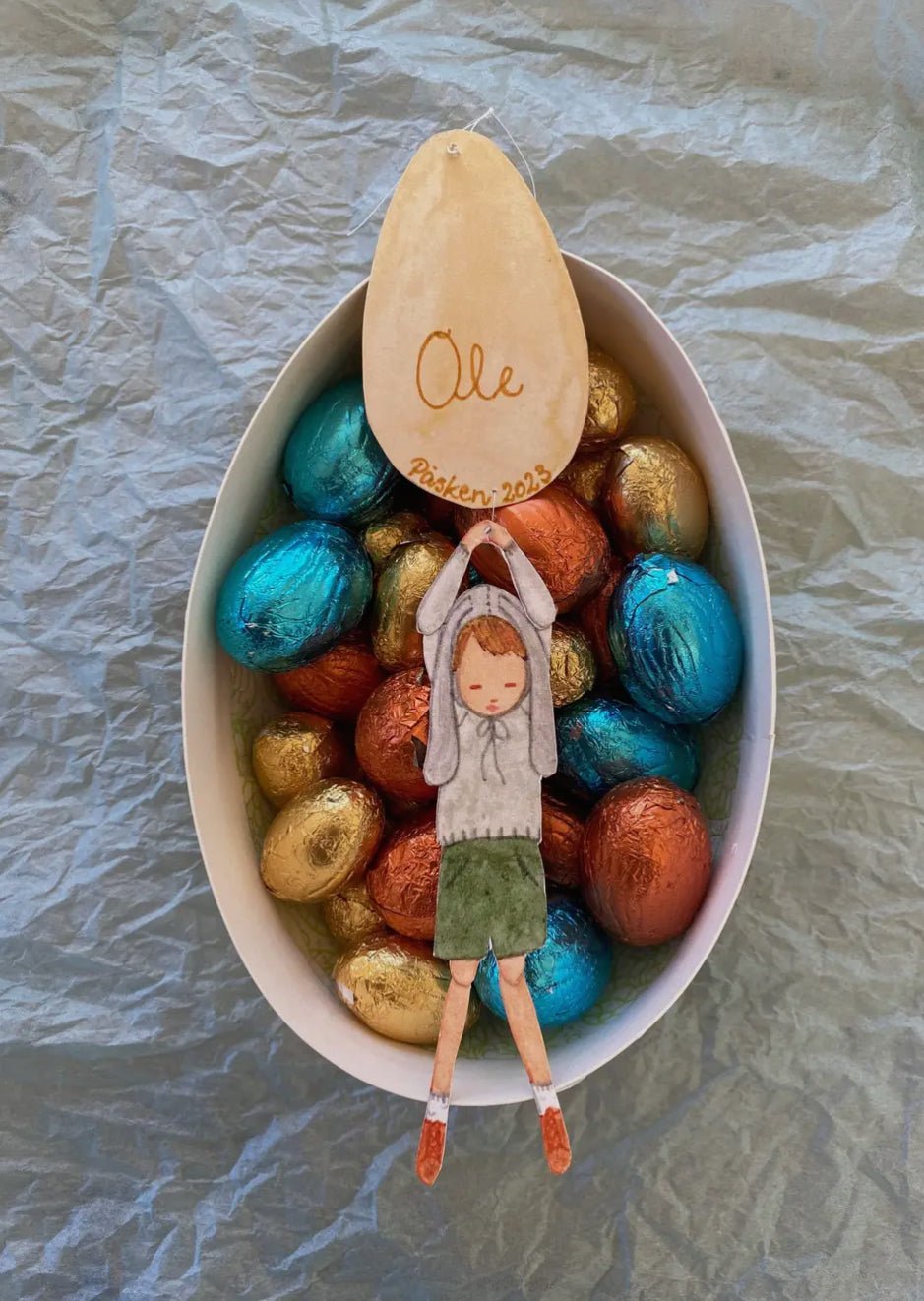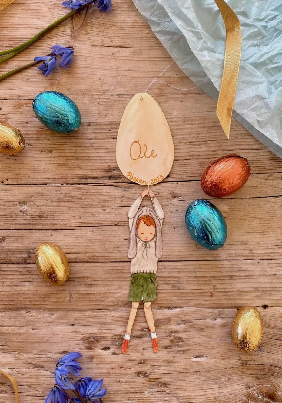 Häng barnen på en gren eller skriv deras namn på ägget och använd som placeringskort.