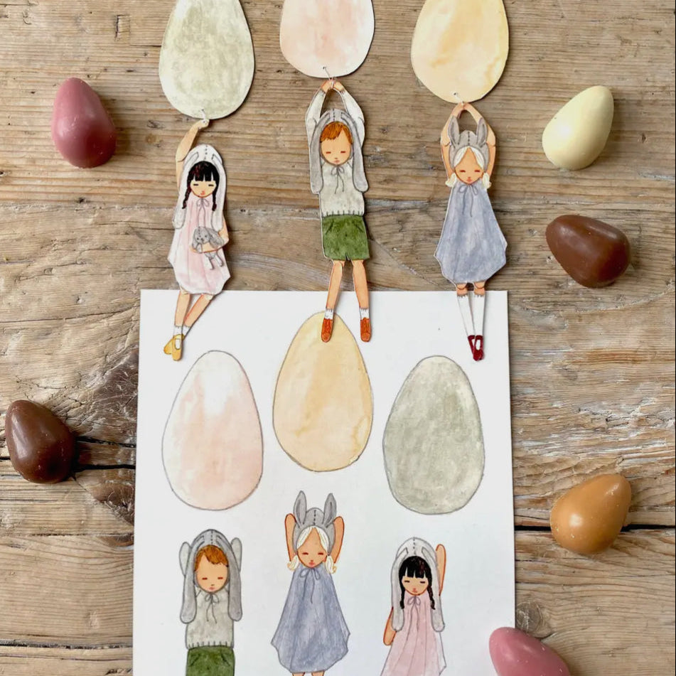 Klipp ut barnen och äggen. Limma och sy ihop dem så att barnen håller fast i varsitt ägg.