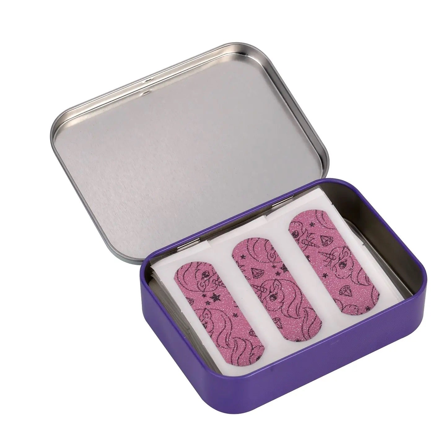 Dina barn förtjänar den bästa sårvården med färgade och glittrande plåster som låter huden andas. De fastnar inte i sår och kan tas bort utan smärta. Klass 1 enhetsförband som överensstämmer med föreskrifter för medicintekniska produkter-