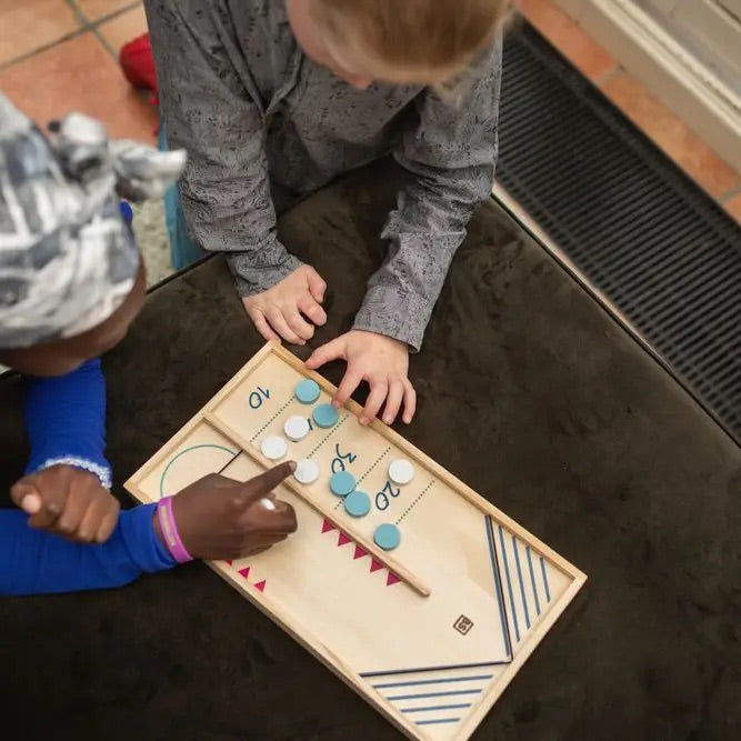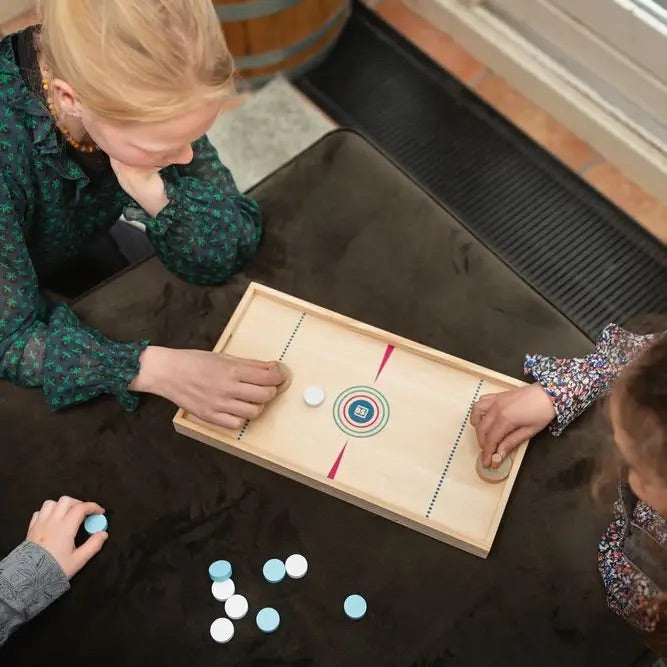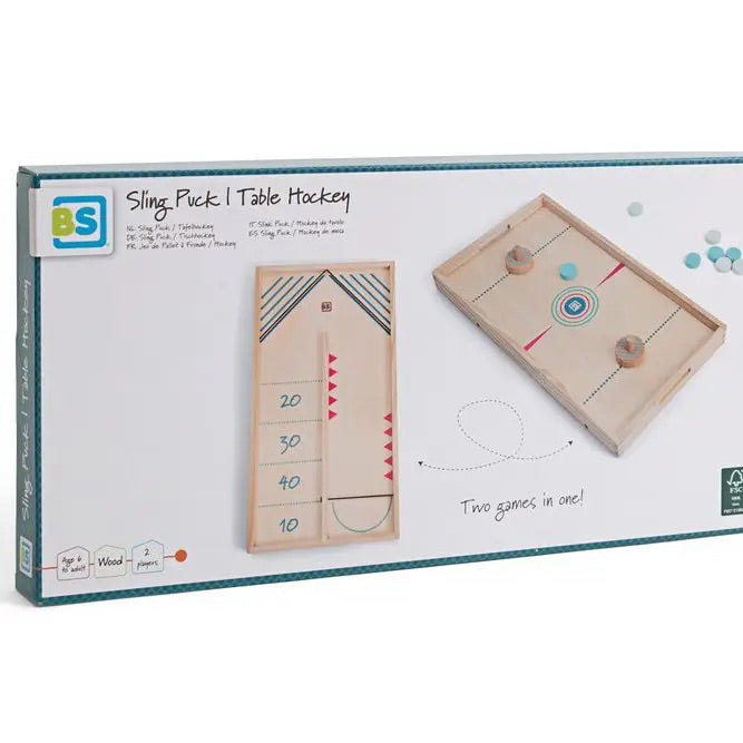 Två spel i ett! Försök att få så många poäng som möjligt när du spelar Sling Puck. Eller vänd brädet för en härlig omgång bordshockey!