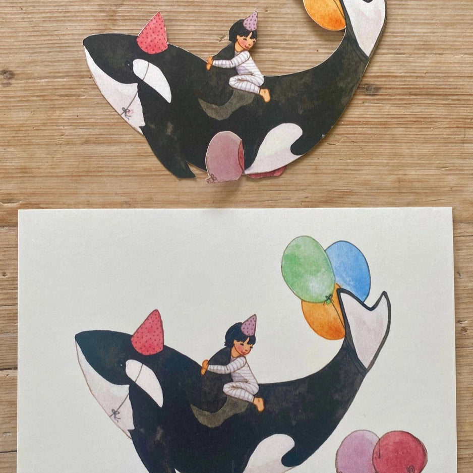 Klipp längs ballongernas linje och sätt ihop dem. Späckhuggaren kommer att stå bra på bordet :)