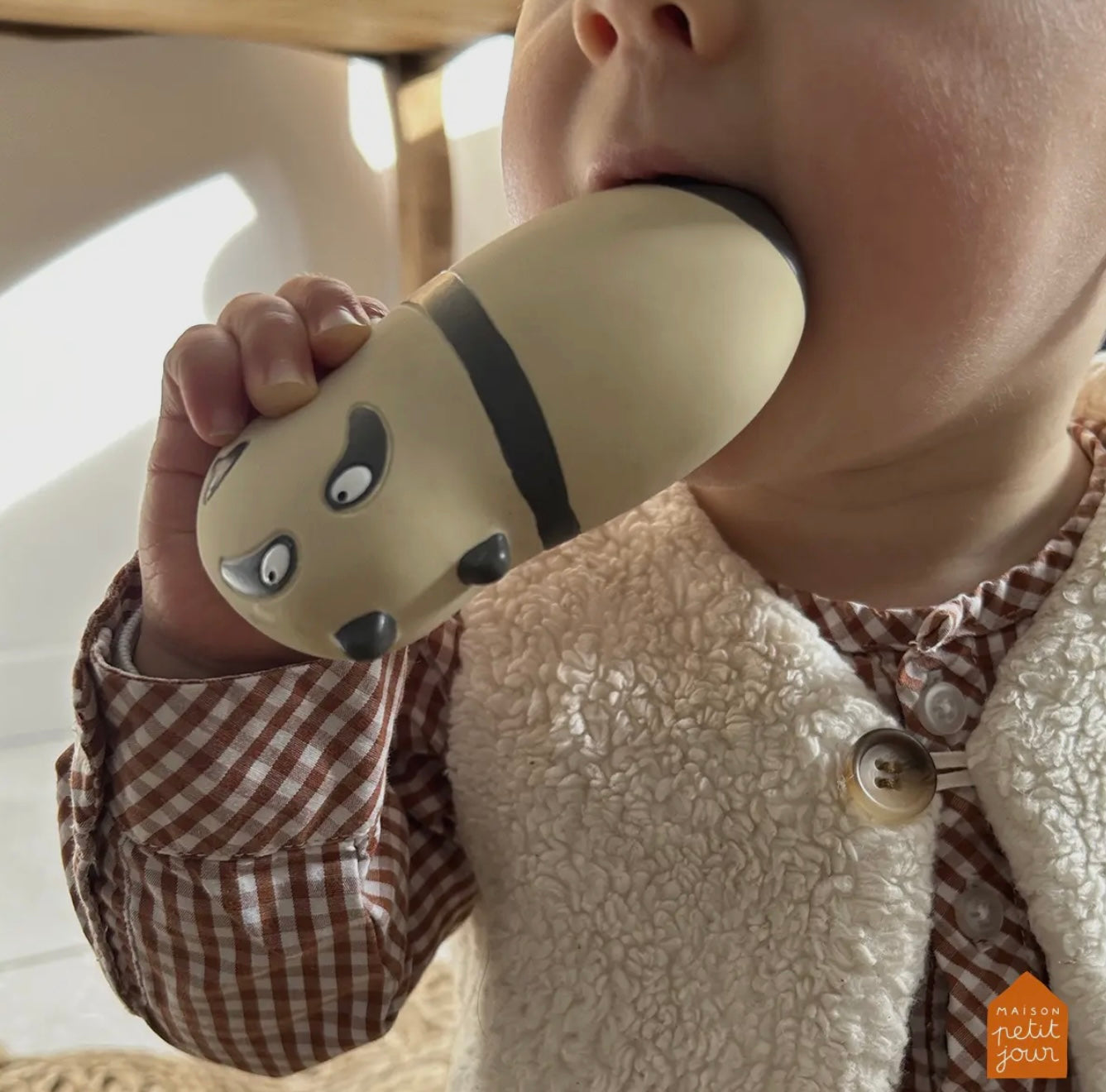 Maison Petit Jour är stolt över att presentera sin nya kollektion av tandprovning och badleksak i naturgummi! Den franska skapelsen handgjordes i 3D från lera för att skapa den perfekta gjutningen för massproduktion. Denna leksak är utmärkt för att lugna ömma tandkött och kan till och med användas i badet! Den extra bonusen: det finns inget hål, så det finns ingen risk för mögel.