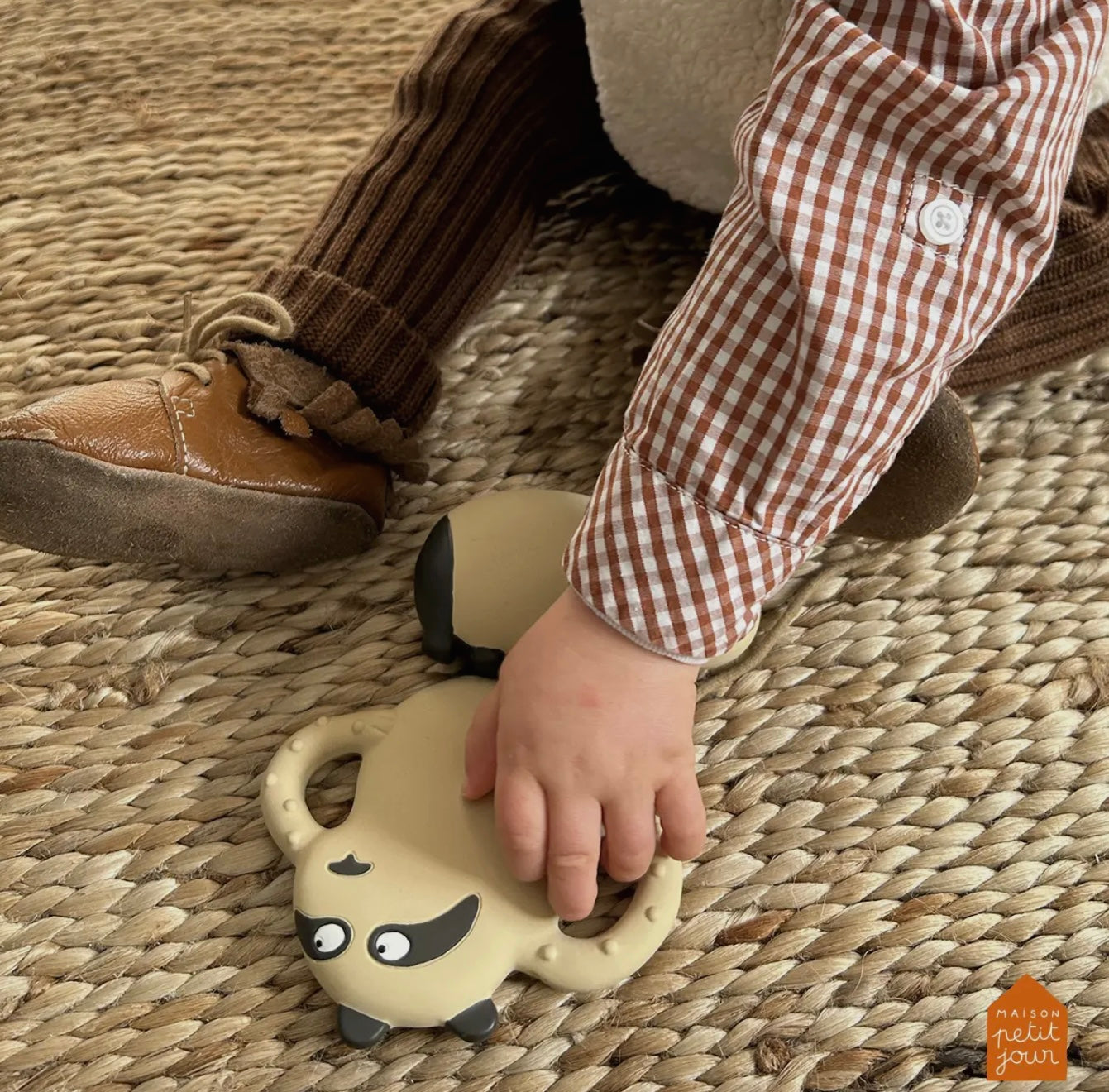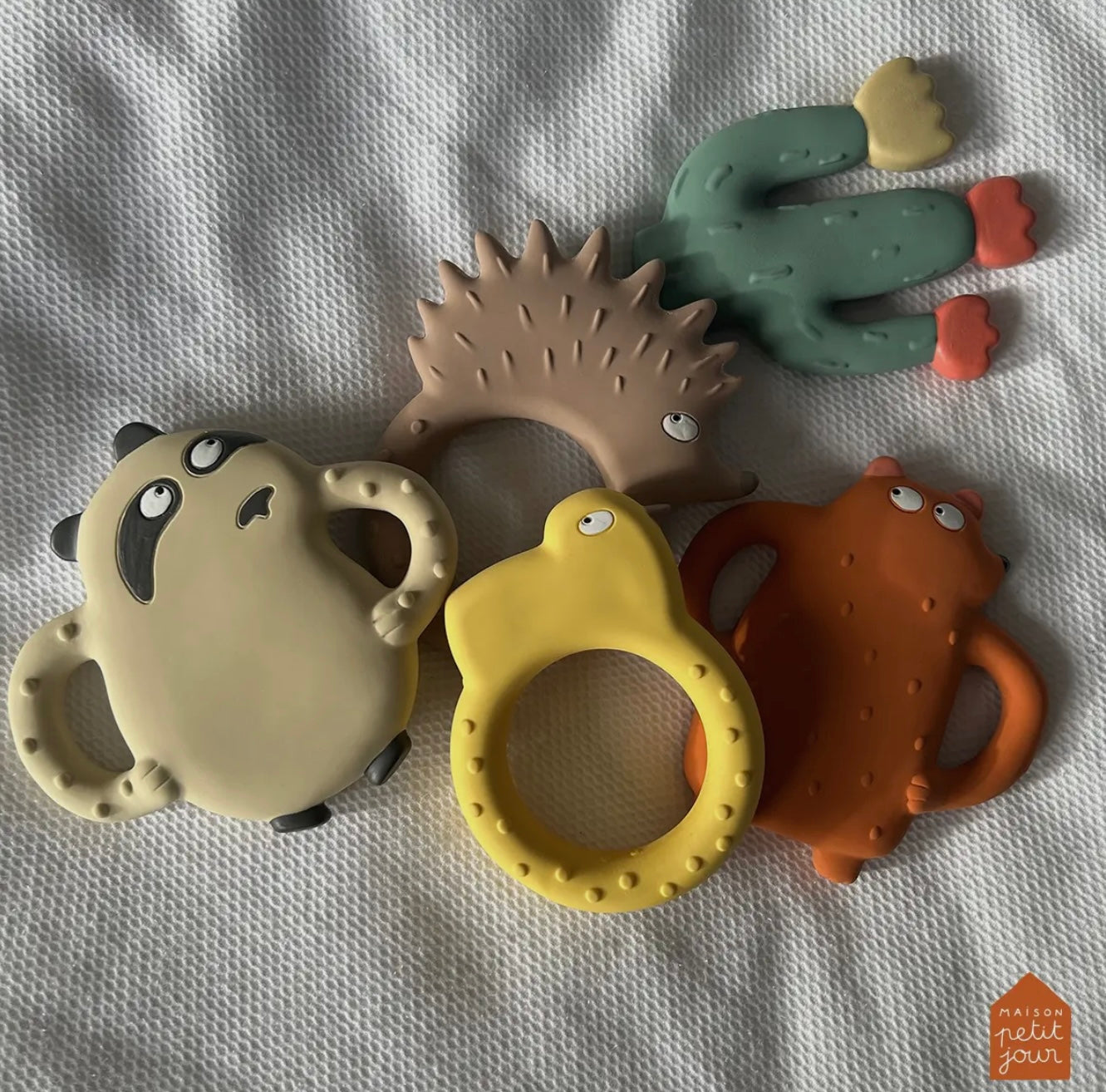 Maison Petit Jour är stolt över att presentera sin nya kollektion av tandprovning och badleksak i naturgummi! Den franska skapelsen handgjordes i 3D från lera för att skapa den perfekta gjutningen för massproduktion. Denna leksak är utmärkt för att lugna ömma tandkött och kan till och med användas i badet! Den extra bonusen: det finns inget hål, så det finns ingen risk för mögel.