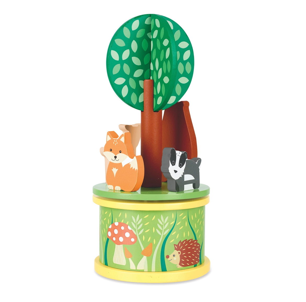 Denna vackert utformade speldosa med skogsdjur, har en hel mängd vänliga ansikten som sitter runt basen. Den lugnande melodin till ”Somewhere over the rainbow” spelar när de roterar.